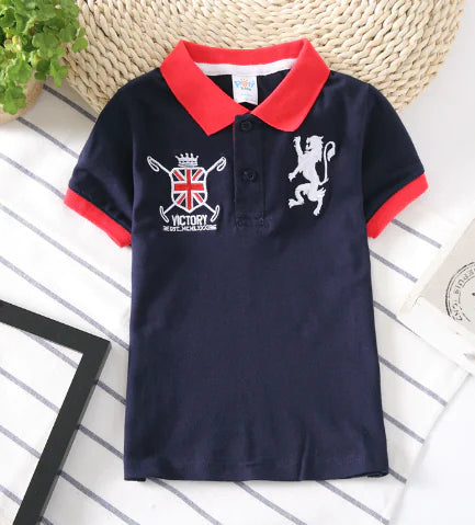 Introducing the perfect addition to your little boy's wardrobe - our stylish polo shirt designed specifically for kids aged 3 to 8 years. Crafted with a moisture-wicking fabric, this shirt keeps your child comfortable and dry, whether they're playing outdoors or attending a family gathering.