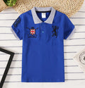 Featuring a classic lapel collar and a plain pattern, this shirt is versatile enough to be dressed up or down for any occasion. Available in a variety of vibrant colors, including Blue, Grey, Red, Royal Blue, and White, you can easily find the perfect match for your child's personality.
