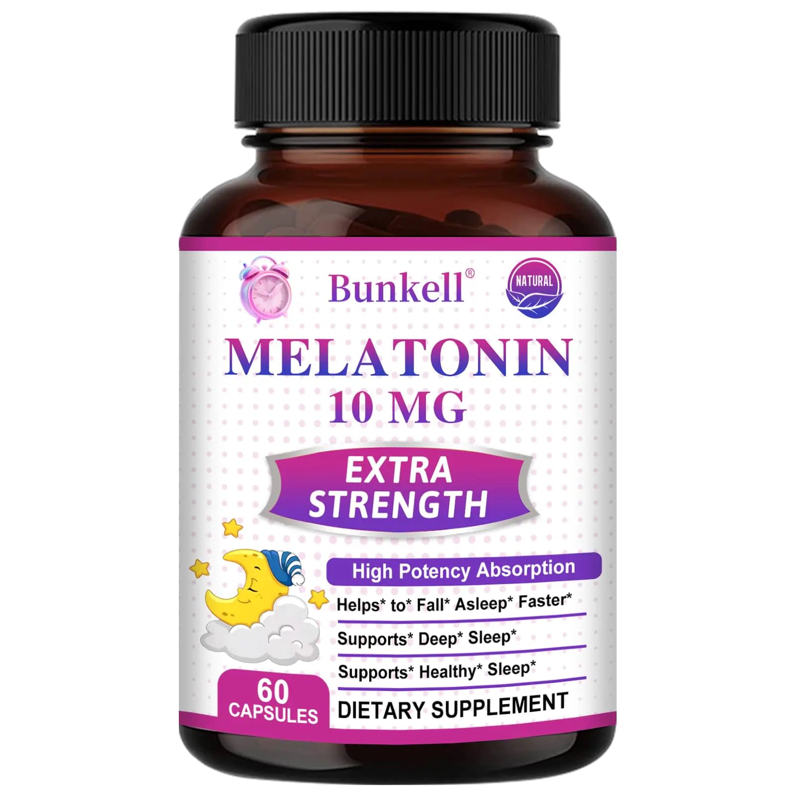 Bunkell Melatonin 10mg Natural Extra Strength Formula Supports Deep Restful Sleep Sleep Aid for Adults Non-GMO Melatonin Sleep Supplement for Sleep Health Support 60 Count