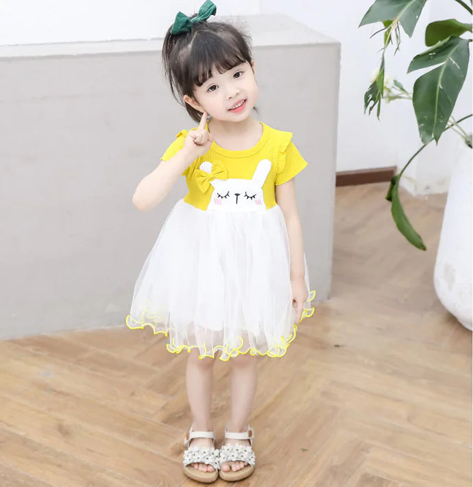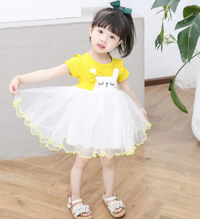Crafted from soft, breathable cotton, this dress ensures all-day comfort while allowing your child to twirl and dance with joy. The vibrant yellow and pink colors, paired with adorable cartoon and animal patterns, make it a favorite among kids.