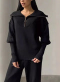 Comfortable Lounge Wear - Solid Color Zip Hoodie Set