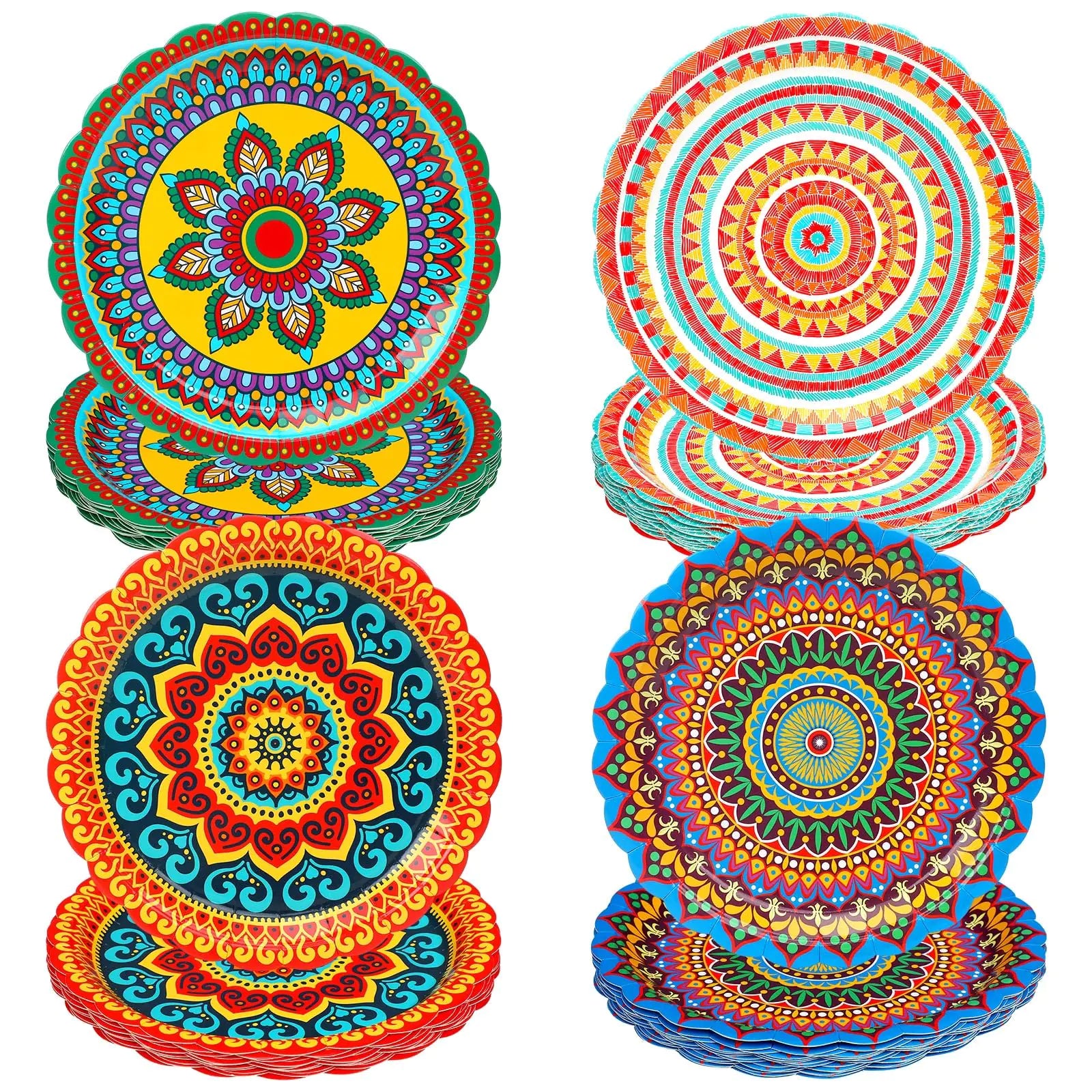 FoldTier 60 Pcs Paper Plates 9 Inch Party Dessert Plates Disposable Taco Party Plates for Decorations Birthday Supplies Cake Favors Baby Shower Safari (Fiesta)