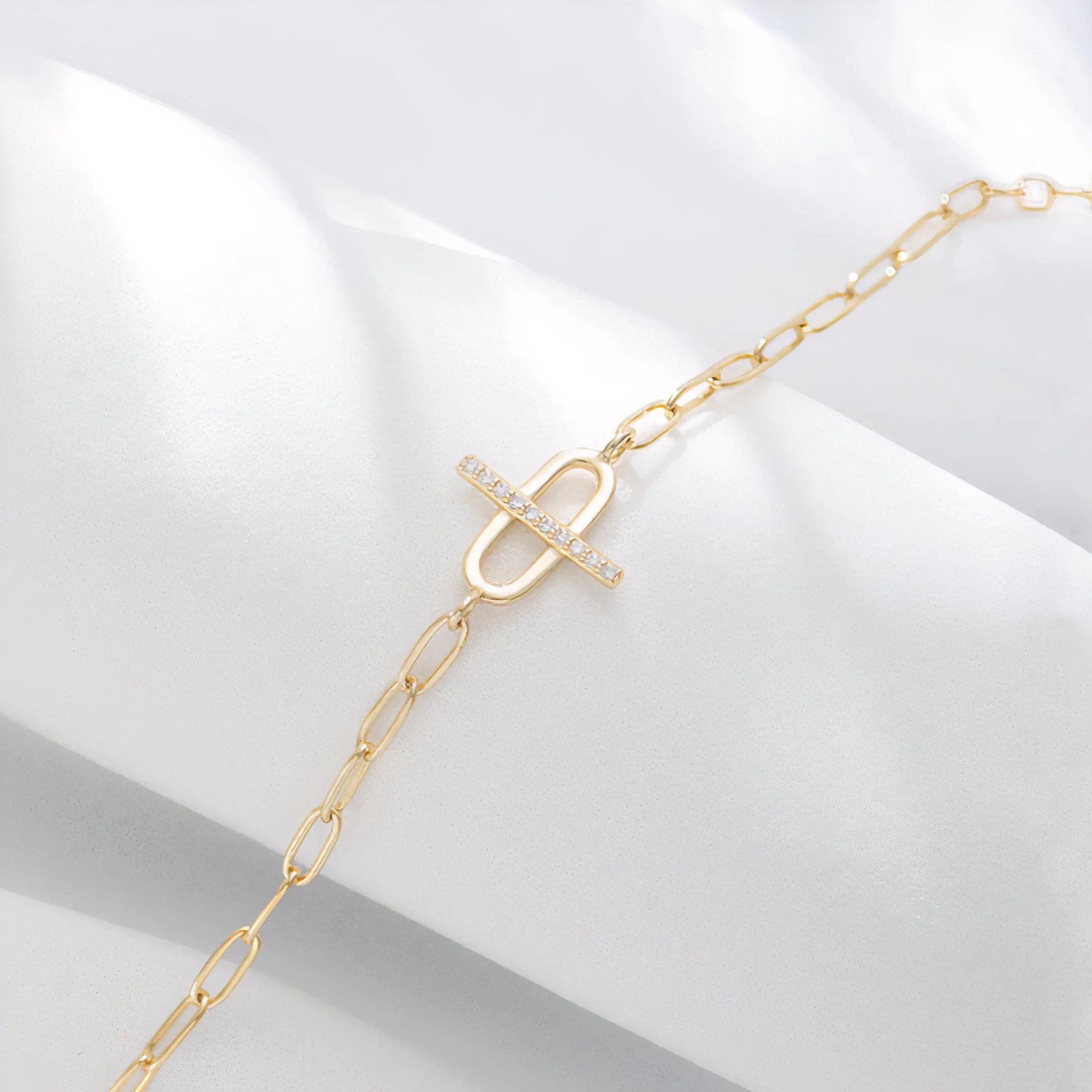 Get a confidence boost every time you wear our unique Lee Bracelet. This one-piece design is crafted from 18K gold plated sterling silver and Cubic Zirconia stones, ensuring a long-lasting, everyday style.