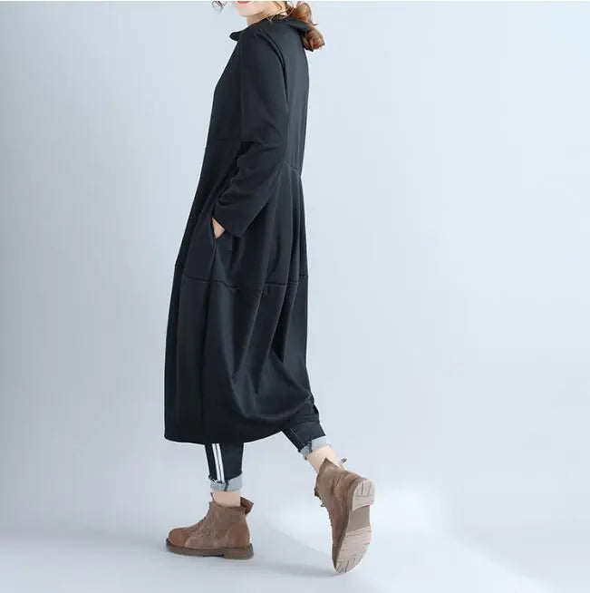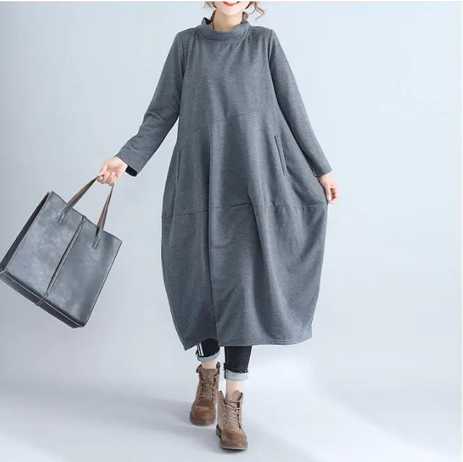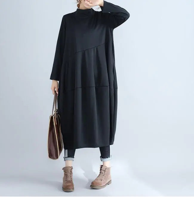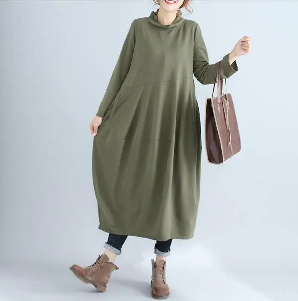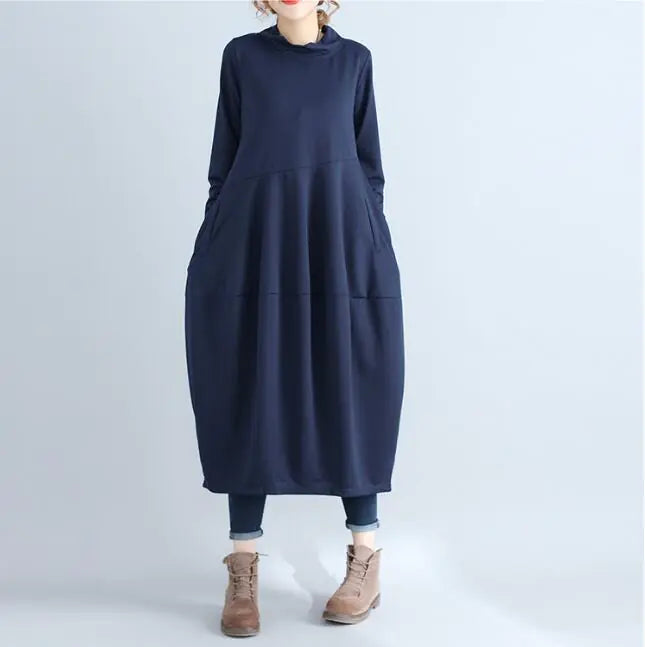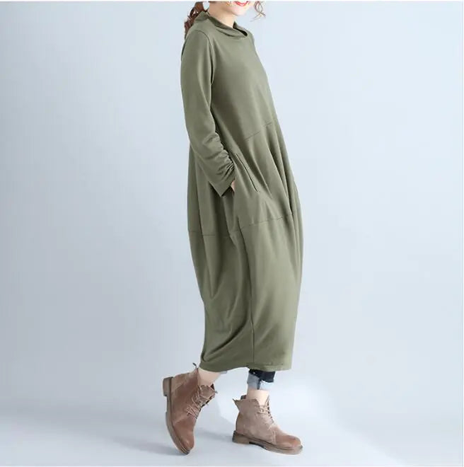 Elevate your autumn wardrobe with our stunning long-sleeve dress, designed to blend comfort and style seamlessly. Crafted from high-quality cotton, this dress is perfect for those leisurely days when you want to feel relaxed yet fashionable. The elegant half-high collar adds a touch of sophistication, making it suitable for both casual outings and more refined gatherings.