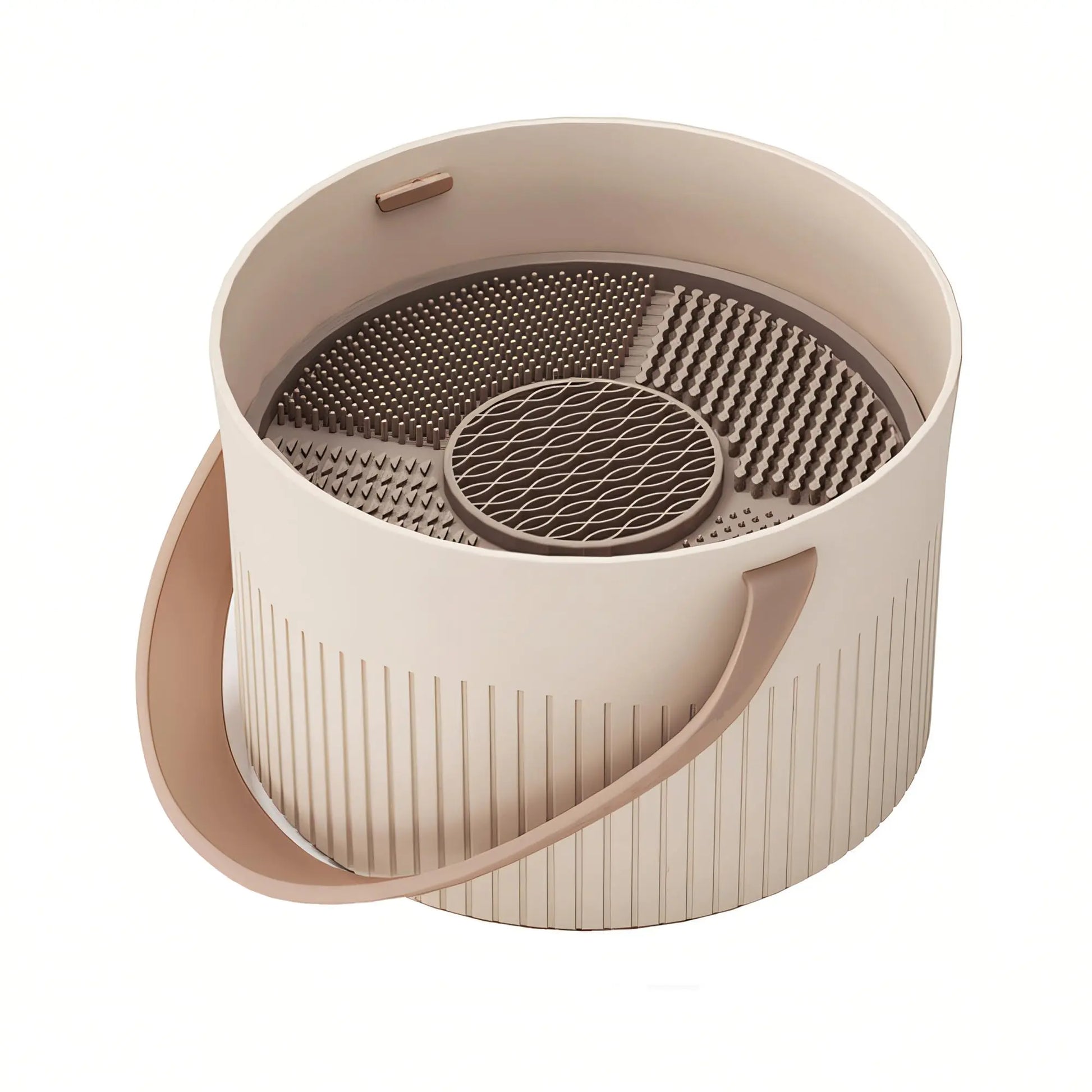 Makeup Brush Cleaning Bowl Drying and Storage Container for Beauty Brushes Silicone Mat Microfiber Duster with Handle Filtration System for Home and Office Use (Powdered)