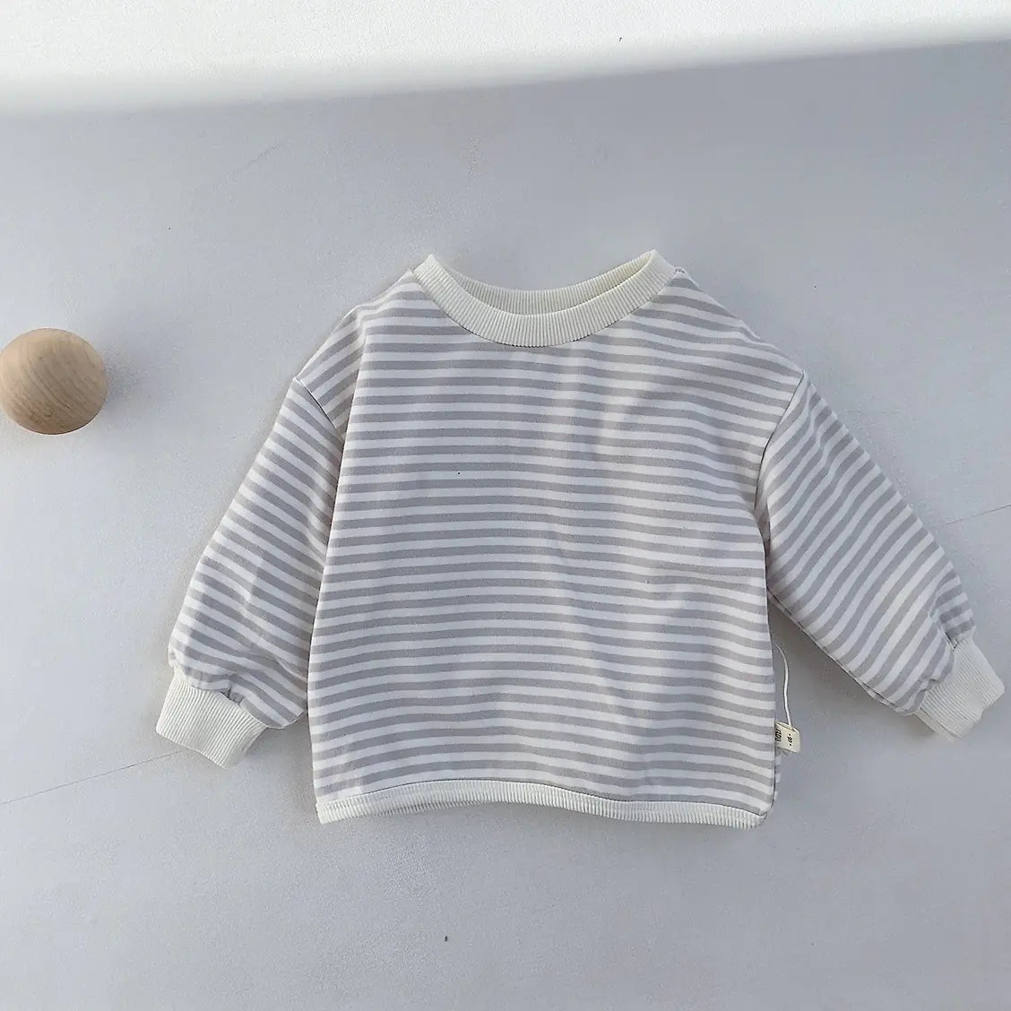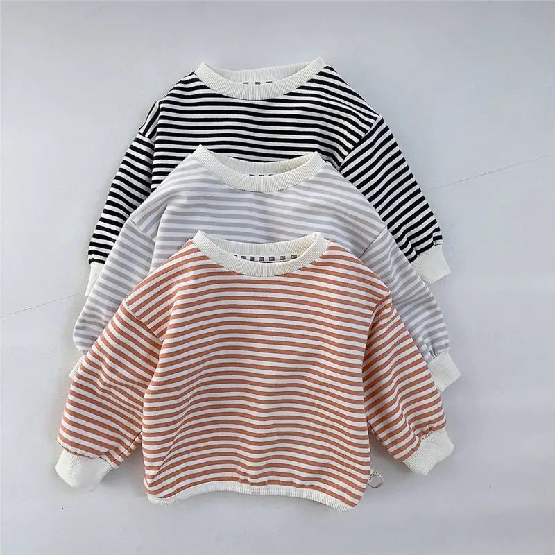Introducing our adorable Children's New Striped Pullover Bottom, a trendy addition to your little one's wardrobe! Designed with a Korean style, this pullover combines comfort and cuteness, making it perfect for playdates or casual outings.