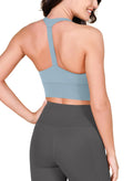 ODODOS ODLEX Halter Sports Bra for Women Padded Wirefree Y Racerback Workout Yoga Bra Chambray Small