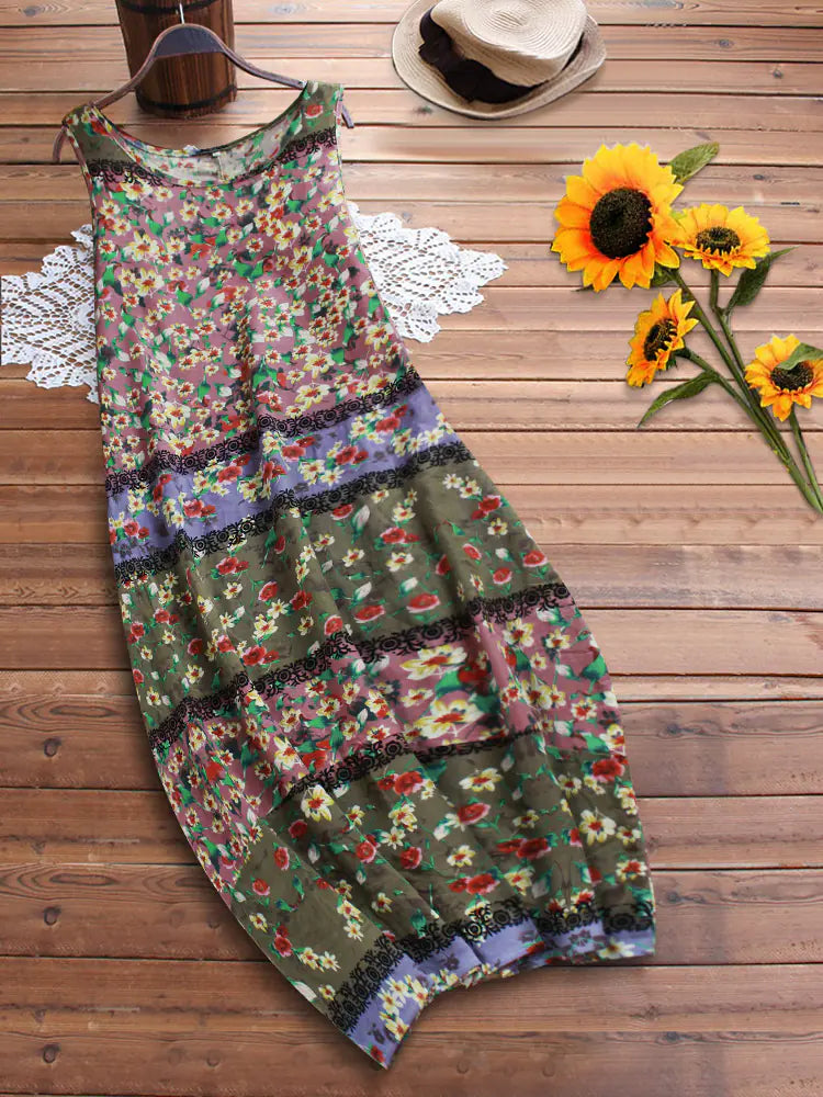 Plus Size Cotton Linen Sleeveless Lantern Dress