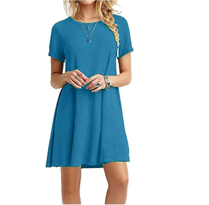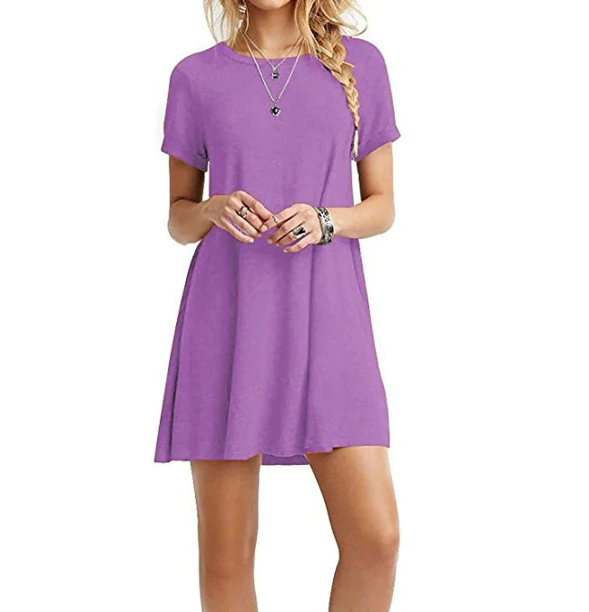 Plus Size Loose Fit Solid Color Dress