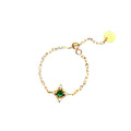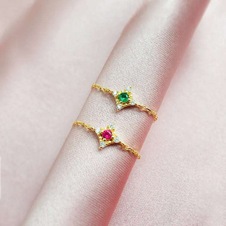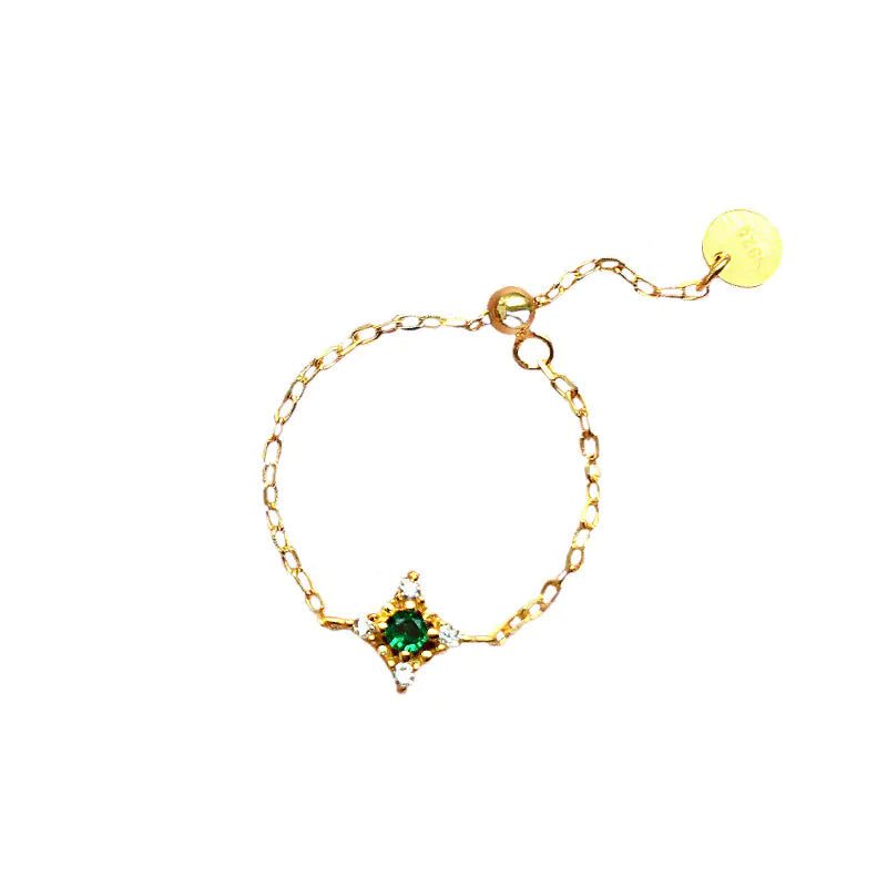 S925 Silver Adjustable Chain Ring with Emerald and Ruby
