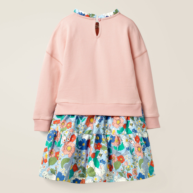 Crafted from 100% cotton, both the main fabric and the lining offer softness and comfort that your child will love. The playful stripe pattern, complemented by adorable cartoons and flowers, makes this dress a whimsical addition to any young girl's wardrobe.