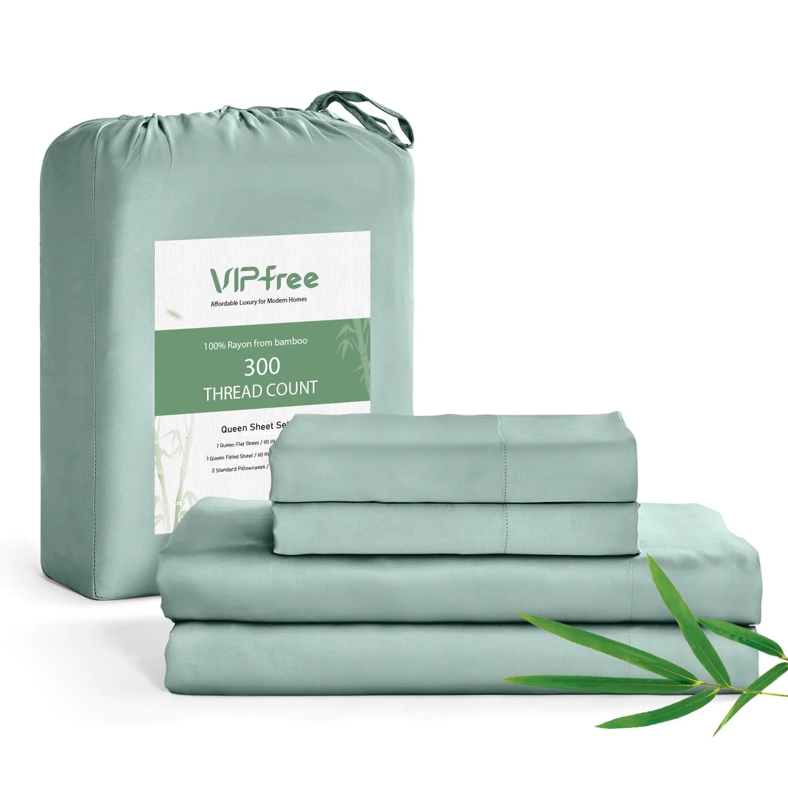 Vipfree Queen Sheet Set 100% Rayon Derived from Bamboo 4-Piece 16 Inch Deep Pockets Cooling Sheets for Queen Size Bed Set Breathable & Silky Soft Hotel Bedding Sheets & Pillowcases Sage Green