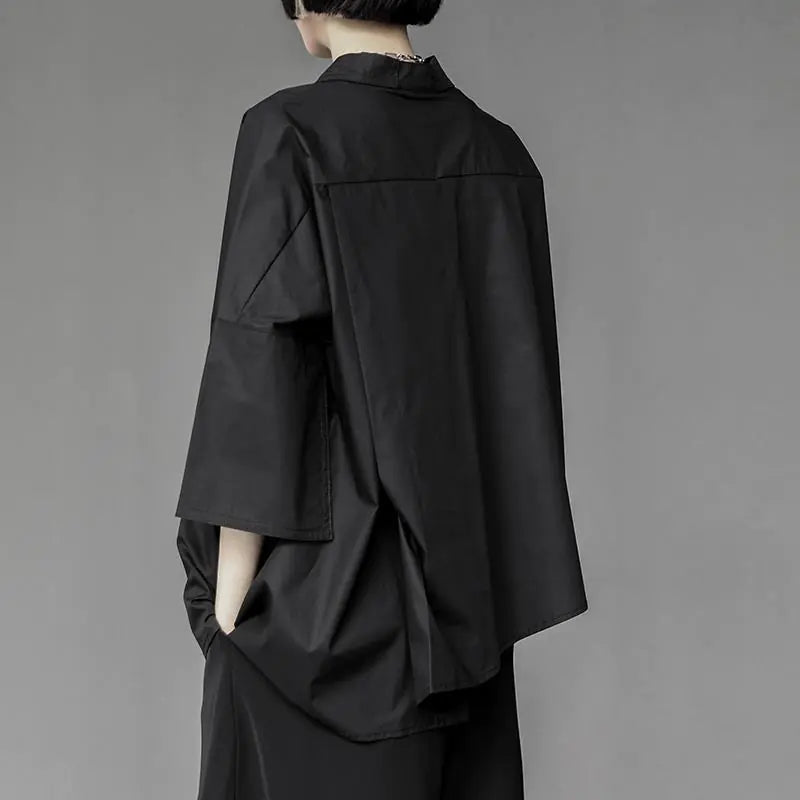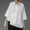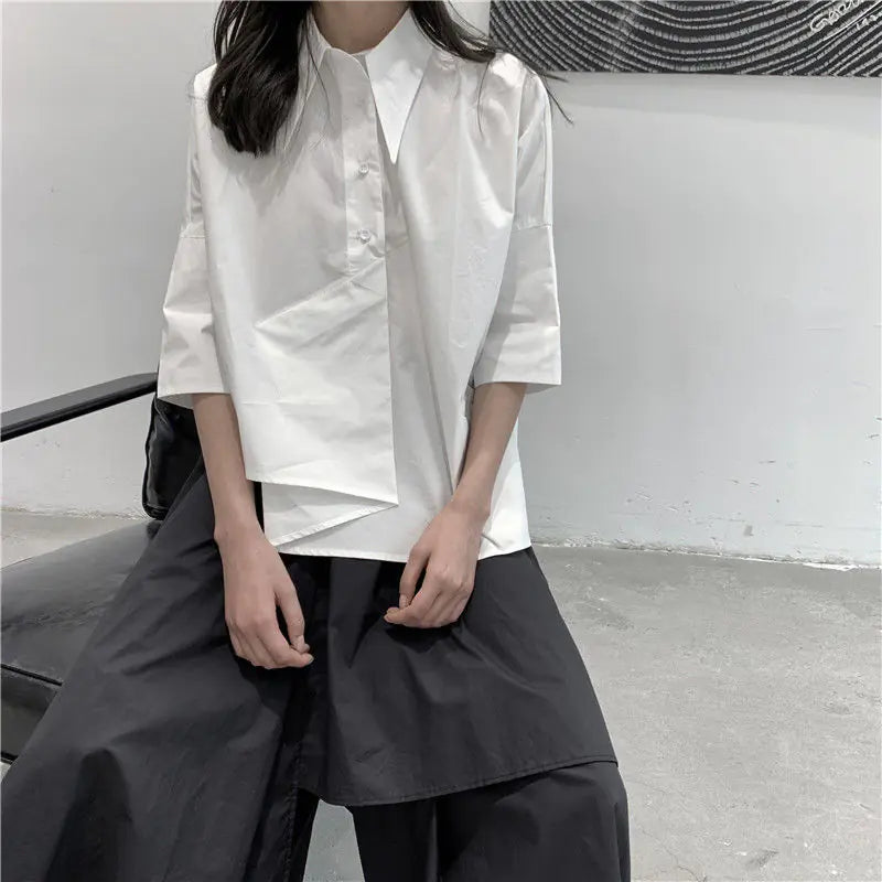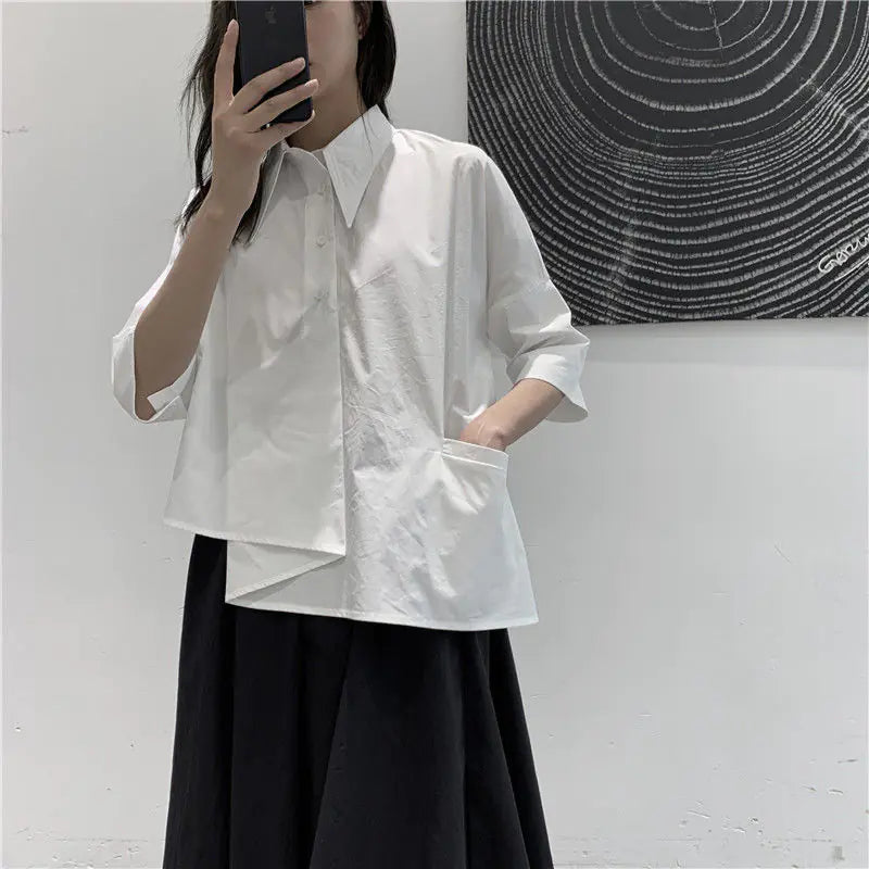 Introducing our Women's Asymmetric Harajuku Shirt, a perfect blend of Japanese and Korean styles designed for the modern woman. Crafted from high-quality polyester, this shirt offers a lightweight and breathable feel, making it an ideal choice for casual outings or relaxed days at home.